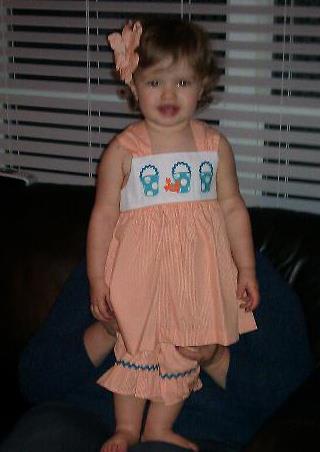 When I was pregnant and we were on vacation in Destin. FL we met a mom and her two sweet little girls. She is from Louisiana and they all had the cutest accents. Besides their accents, one thing I noticed right away was the clothes that her two daughters wore. They were adorable and not just the "oh that is a cute outfit" adorable, but the "seriously I HAVE to have some of these ridiculously cute clothes for my unborn daughter" adorable! I finally asked her where did she shop for her daughters' clothes and she told me about Kelly's Kids. At the time they really didn't have a line for infants so I knew I would wait till she was a bit older. (Now that they have infants clothes too!)